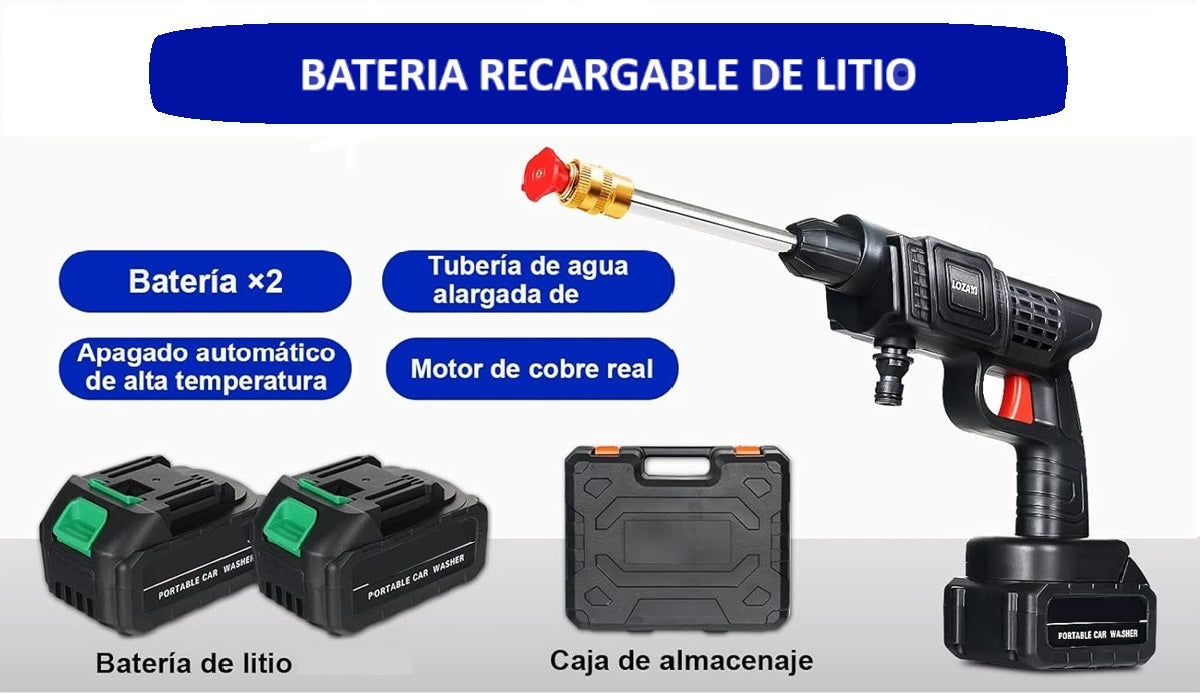 Es esta hidrolavadora inalámbrica portátil ofrece una limpieza eficiente y versátil sin las limitaciones de cables. Su diseño compacto facilita su transporte y uso en distintas superficies, ideal para vehículos, exteriores y áreas difíciles de alcanzar.